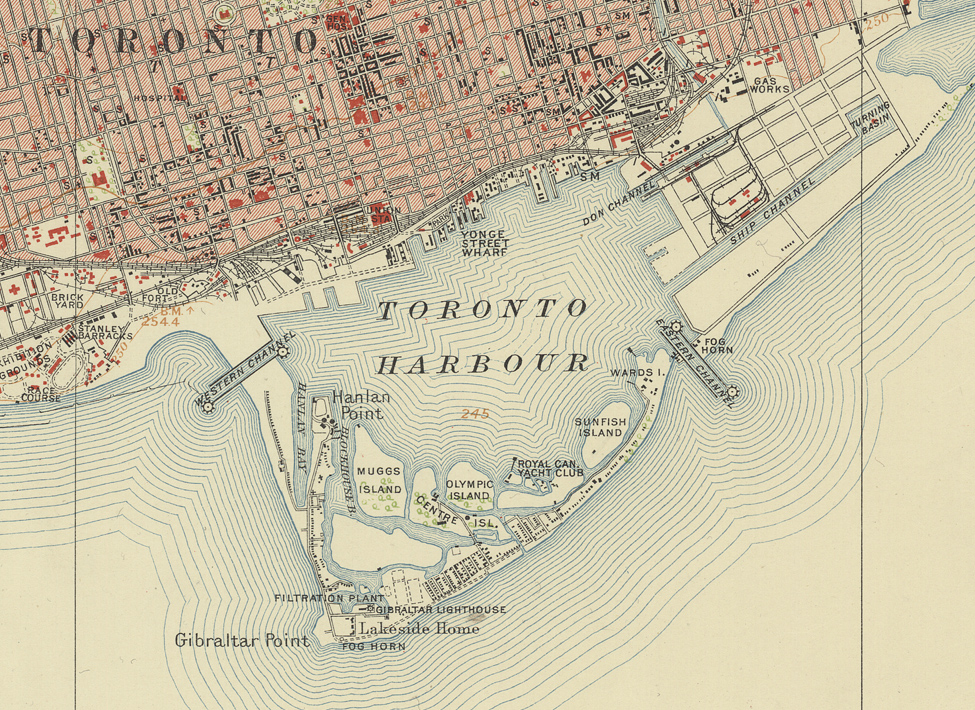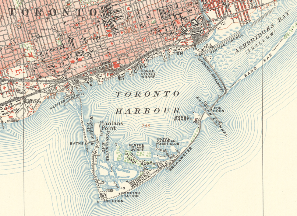 (areas forming the Don River Delta and Ashbridge’s Bay)