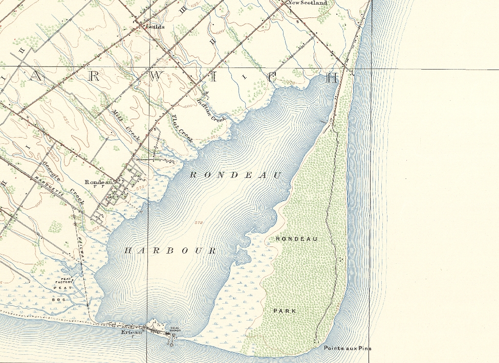 Rondeau Provincial Park, created in 1894 and located on a sand spit extending into Lake Erie, is the second oldest provincial park in Ontario. The name of the park comes from the French words “ronde eau” or “round water” which describes the shape of the harbour sheltered by the peninsula. Rondeau is home to the largest area of Carolinian forest in Canada, and is an important stopover for birds during migration.
